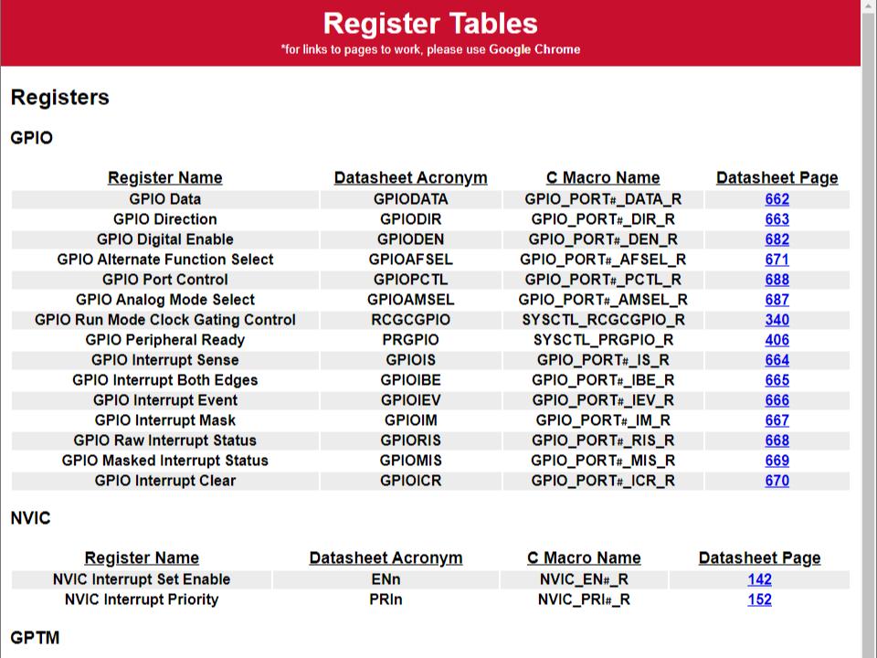 Registers list